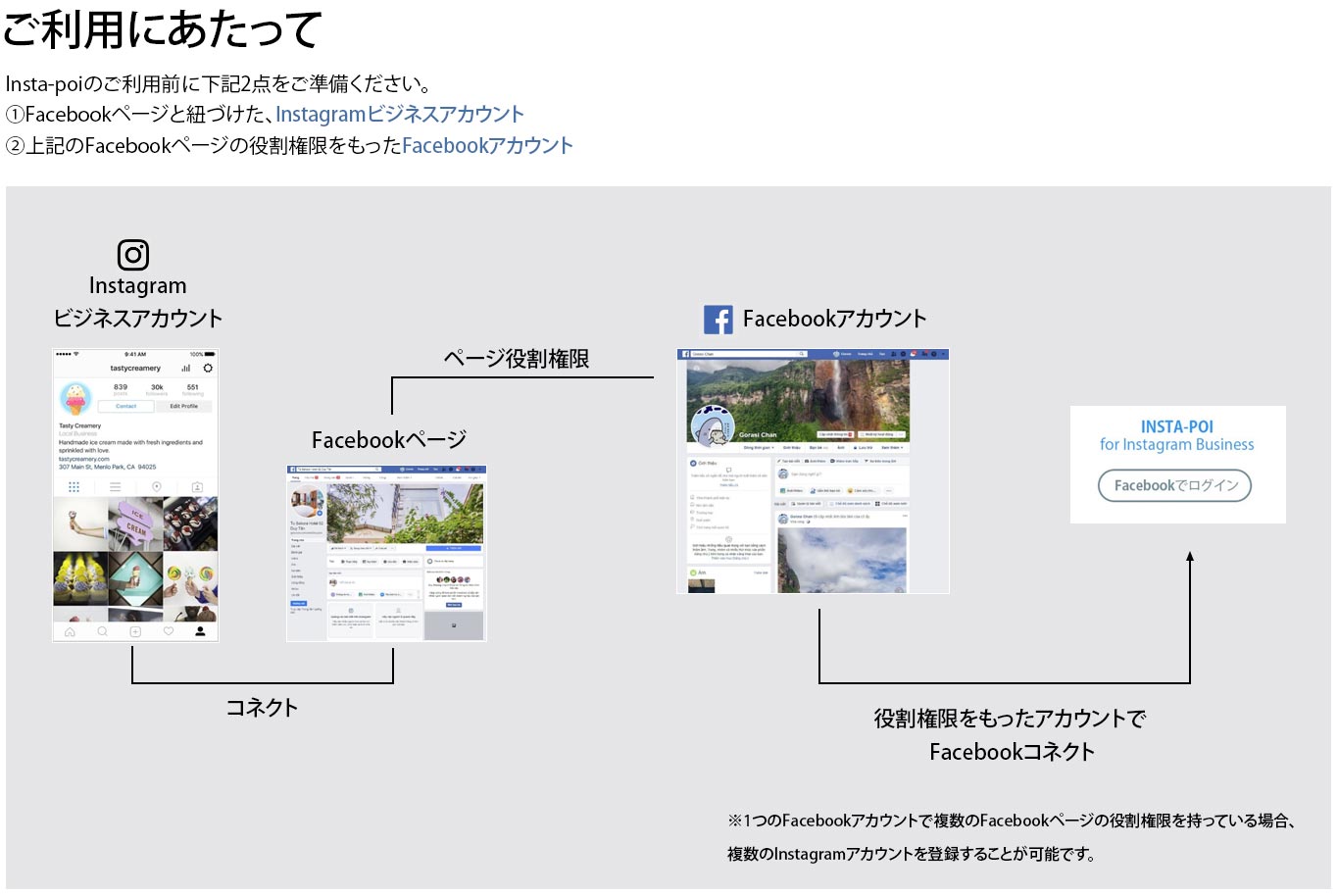 ※FacebookページとInstagramアカウントの紐付け方法は下記をご参照ください。